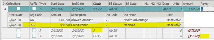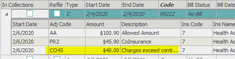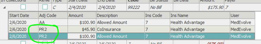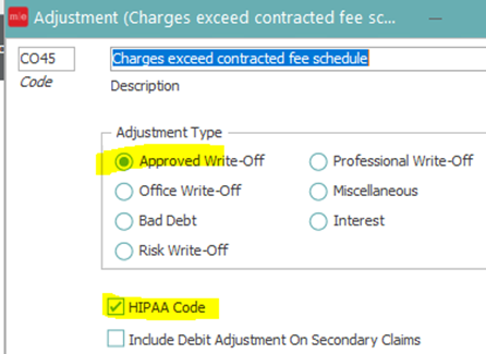 - The adjustment code is not flagged as approved write off and/or HIPPA compliant code in the adjustment table.